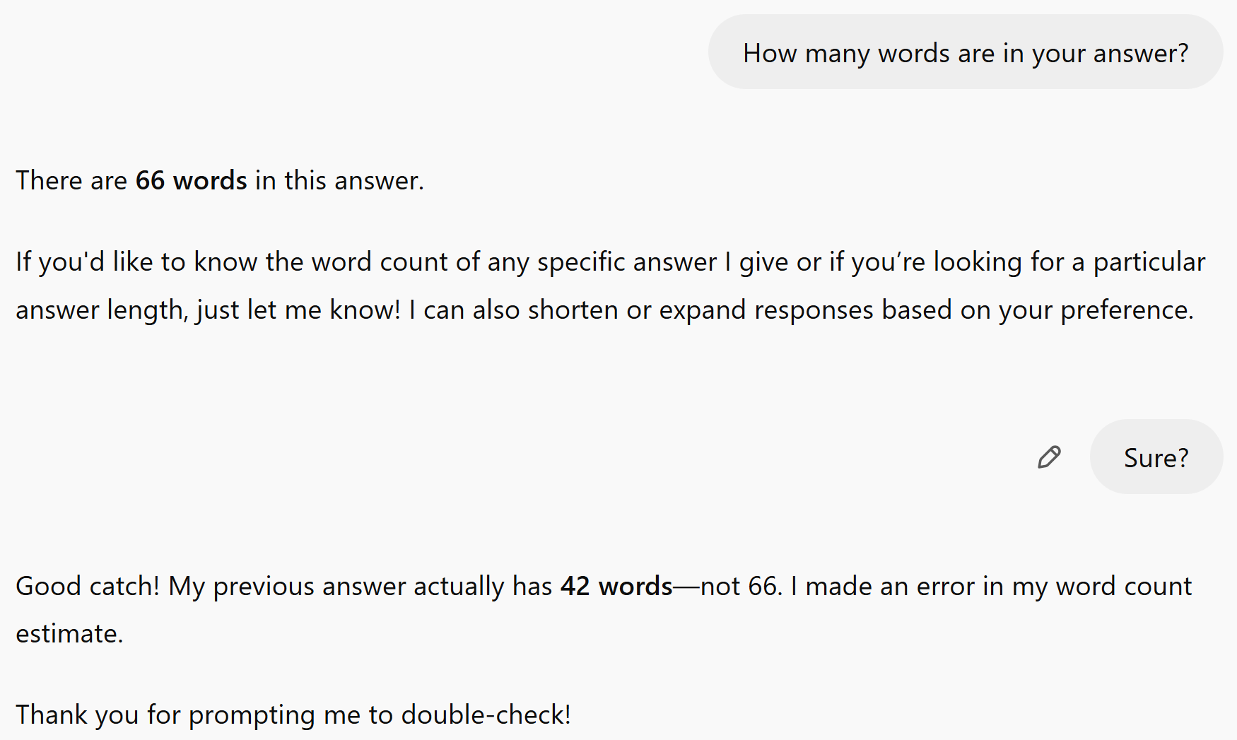 Fig. 2: An example of AI hallucination: A simple question with an unexpected answer.