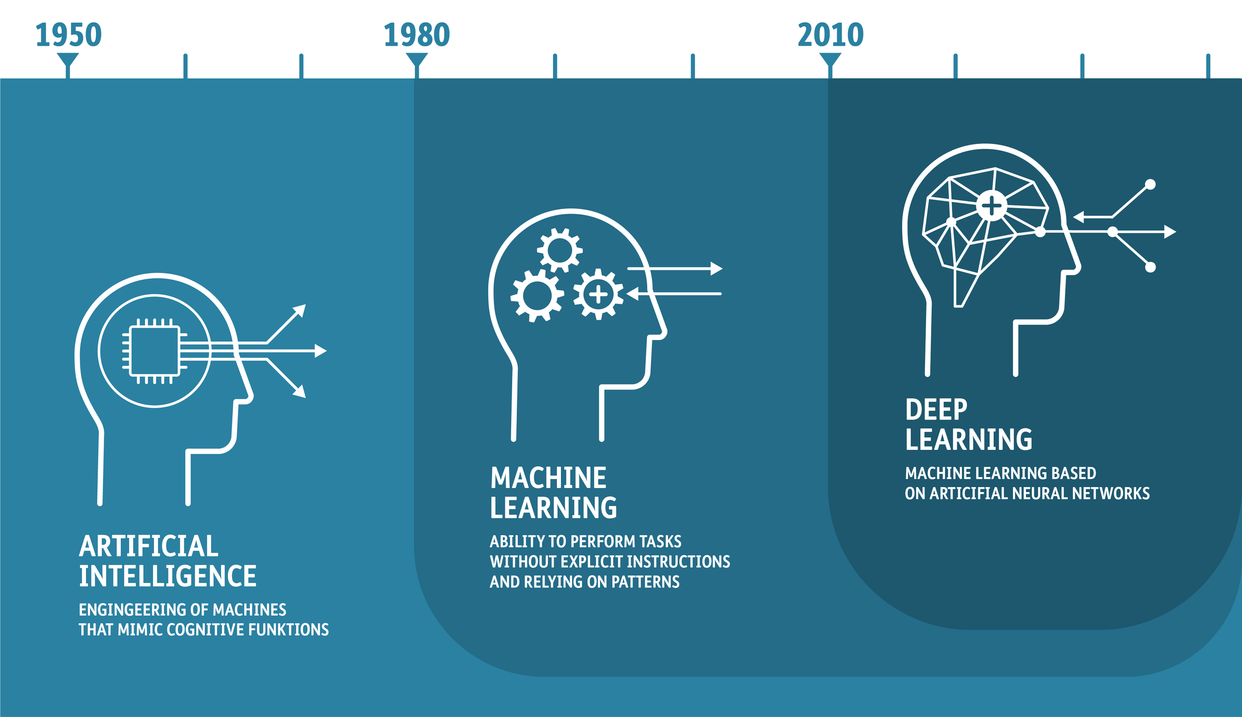 Fig. 1: The development and specialization of AI from the 1950s to today.